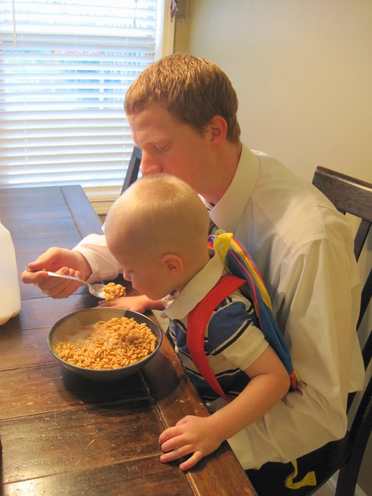 Every morning, Austin eats his own breakfast...then anyone else's who will let him!